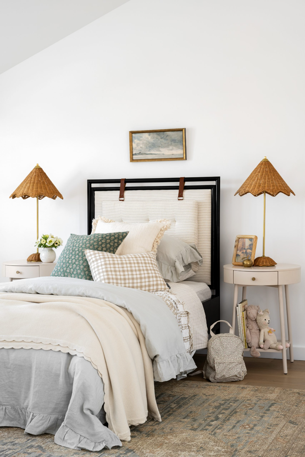 Inevitably as kids get older their tastes and interests change. However, this doesn’t mean that you should never have any fun with their spaces! In fact, we tend to go the opposite direction: throw lots of colours and patterns together. This way you can pare back the colours and swap out some prints as they grow up without having to redo the entire room. Bedding is one of the easiest ways to pack on a lot of different textiles and patterns so start there!